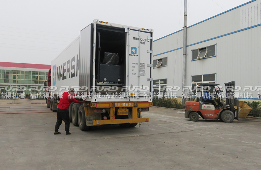 3月19日,福瑞得機械裝柜出口一批座駕壓路機。