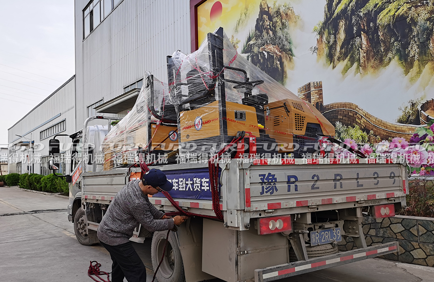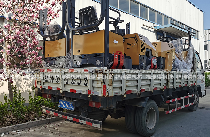 4月23日,福瑞得機(jī)械將日照客戶十天前訂購(gòu)的7臺(tái)1噸全液壓振動(dòng)壓路機(jī)裝車發(fā)走。