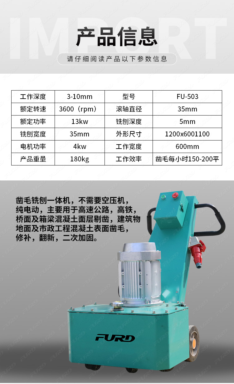 銑刨鑿毛一體機同時具備了銑刨機和鑿毛機這兩個機器設備的功能,不但效率高而且為您節(jié)省費用,提高工作效率!該機器可以用于高速公路、高鐵、橋面及箱梁混凝土層剔鑿,建筑物地面及市政工程混凝土表面鑿毛、修補、翻新、二次加固。
