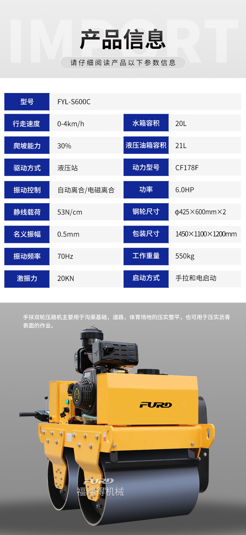 主要用于溝渠基礎,道路,體育場地的壓實整平,也可用于壓實瀝青表面的作業(yè)。