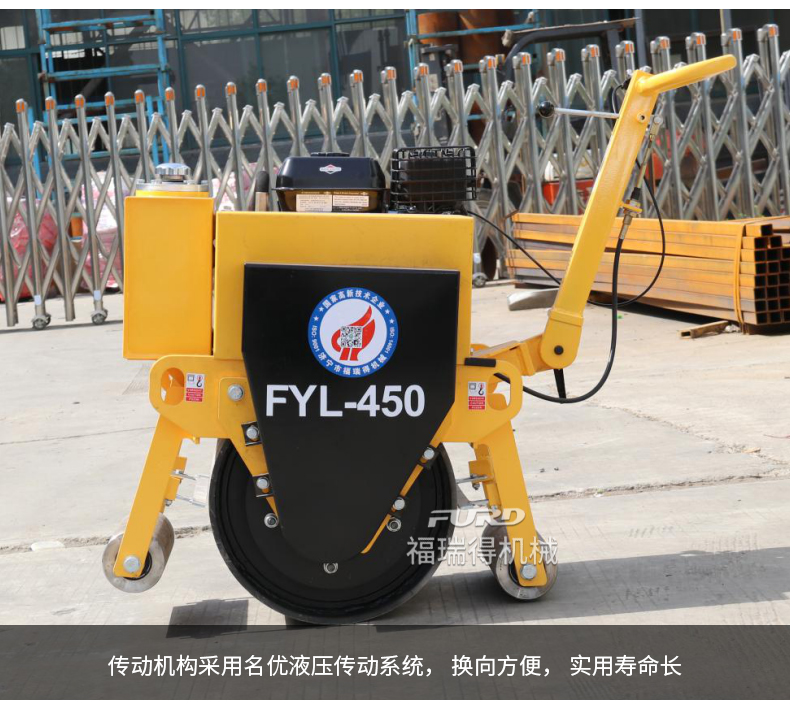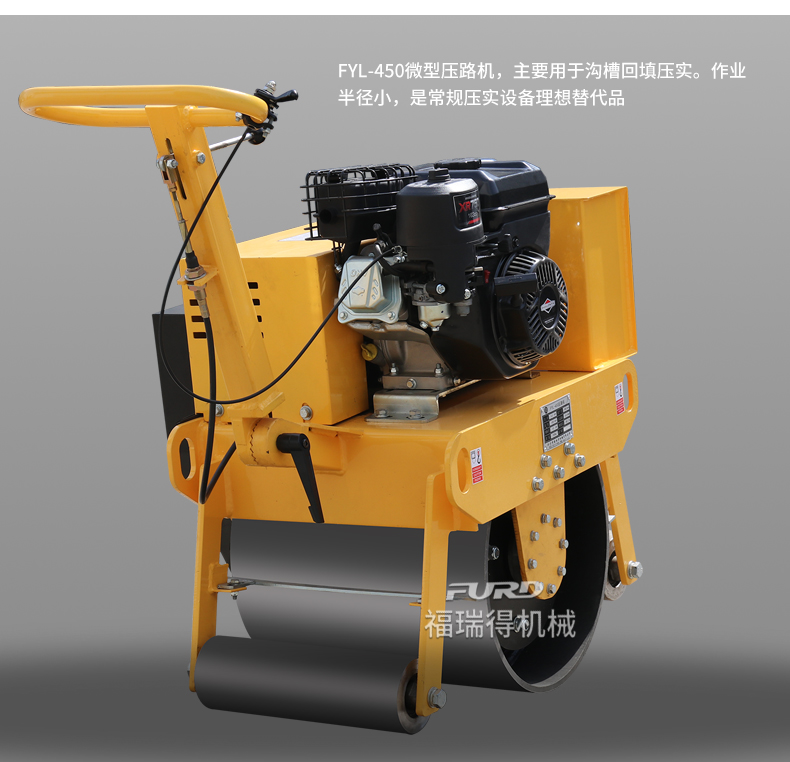 主要用于溝渠回填壓實,F(xiàn)YL-450壓路機可以替代平板夯。