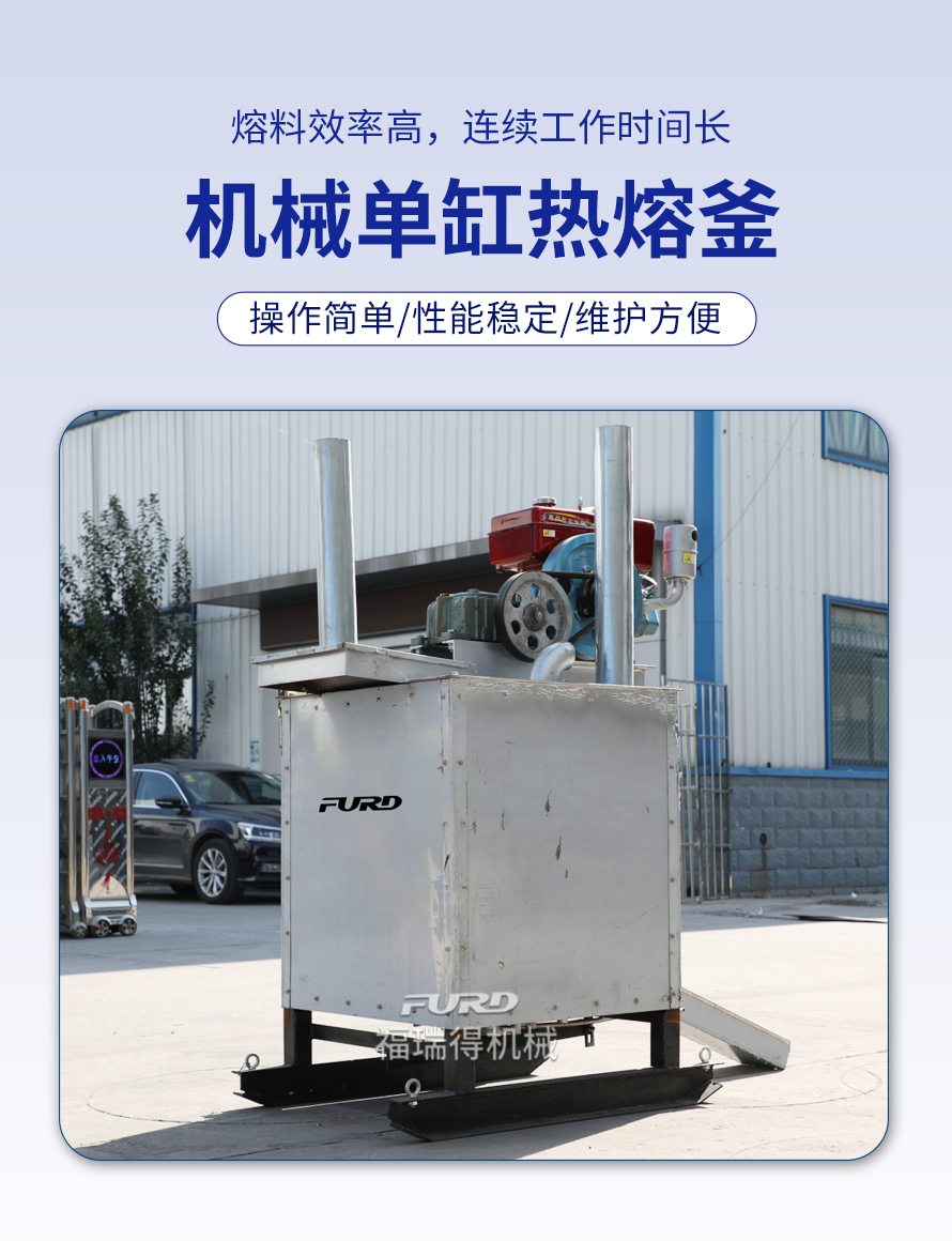 300L機械單缸熱熔釜,具有質(zhì)量輕、體積小、運輸方便等特點。主要適用于停車場、物業(yè)小區(qū)、工廠企業(yè)、碼頭等小型工程施工。