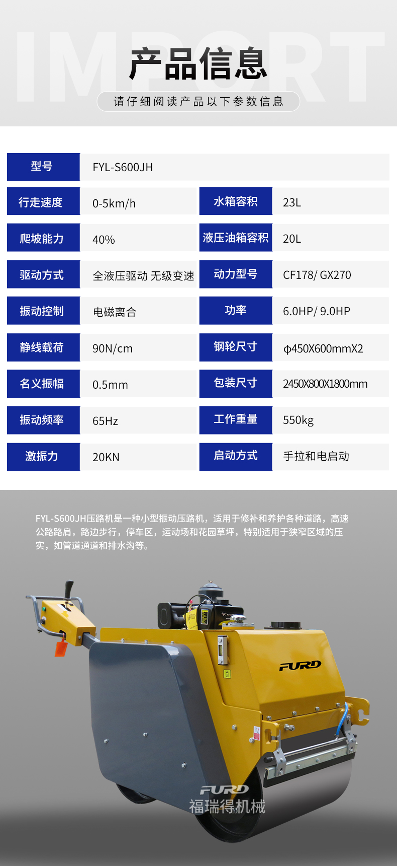 FYL-S600JH全液壓手扶及雙鋼輪壓路機(jī)