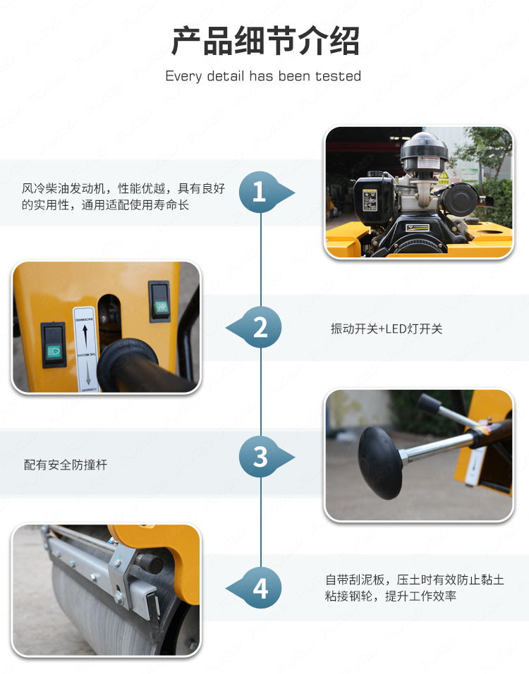 小型振動壓路機,適用于各種道路、高速公路肩路、路邊人行道、停車場、運動場、花園草坪的修補和養(yǎng)護(hù)。特別適用于管道、排水溝等狹窄區(qū)域的壓實。