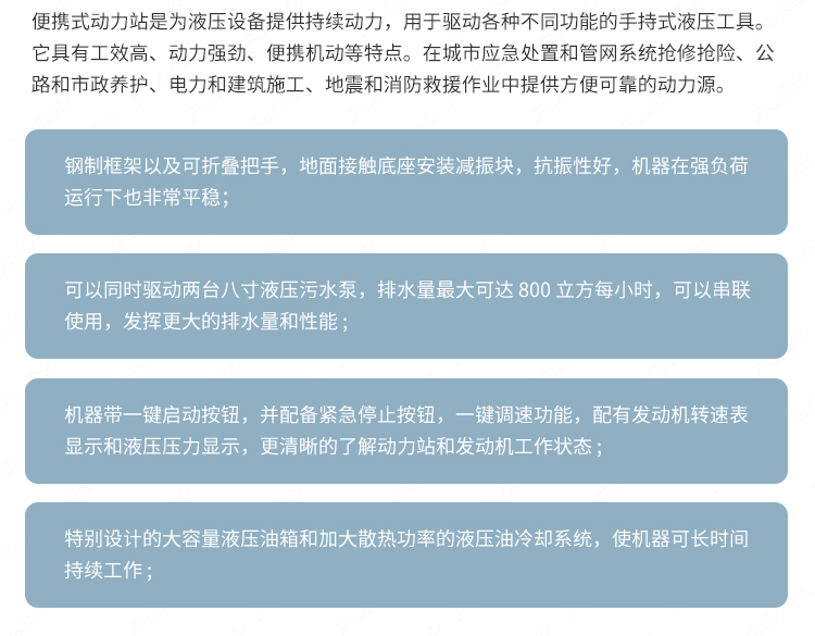 適用于路面搶修、道路施工、市政維護、保養(yǎng)、園林等工作場景 ;.設備安裝便捷,搬運簡便,適應性強,可輕松解決破碎、切削、分裂、打樁、壓實等施工項目。